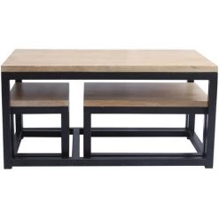 L’ensemble FACTORY a été travaillé avec du manguier, une essence de bois exotique chaleureuse. L’association du bois massif et du métal en fait des tables solides et leur donne un look industriel subtil. Avec leur forme épurée, ces trois tables gigognes sont intemporelles et faciles à intégrer dans différents styles déco.