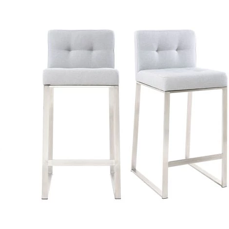Les lignes rectangulaires du tabouret de bar design métal et tissu gris clair 66cm HALEY en font un meuble moderne, idéal pour les bars et cuisines contemporains !
