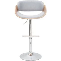 Son design a été travaillé pour faire de ce tabouret une assise sobre et originale, facile à intégrer dans son intérieur. Le mélange entre un siège en polyester gris, une structure en bois clair cintré et un piétement chromé rend unique ce tabouret haut. Grâce à ses lignes courbes et la finesse de son design, cette assise apportera une touche de modernité dans une cuisine, autour d’un îlot central, ou dans une pièce à vivre associée à une table haute ou un comptoir.