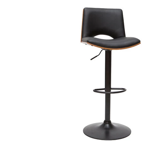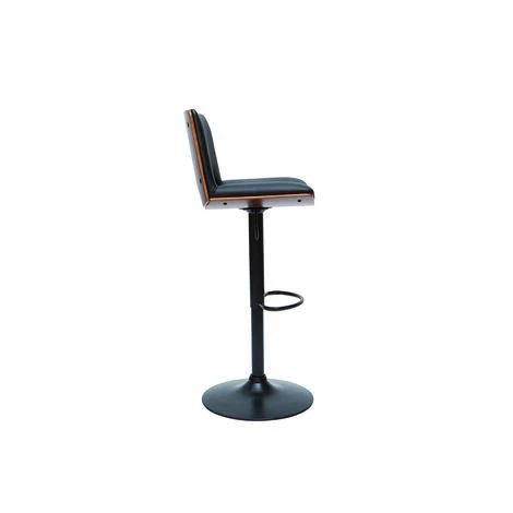 Le tabouret de bar PANACH est un siège sobre et élégant, travaillé dans un parfait style rétro modernisé. L’assise est composée d’une structure en contreplaqué placage noyer associée à une partie rembourrée recouverte de polyuréthane noir. On aime ce joli mix bimatière pour son rendu chaleureux et sa facilité d’entretien. Il est accompagné d’un solide pied central en métal noir, réglable en hauteur grâce à la poignée située sous le siège. Design et épuré, PANACH possède toutes les qualités pour intégrer les intérieurs modernes ou d’inspiration vintage, de la cuisine au séjour.