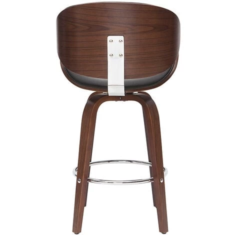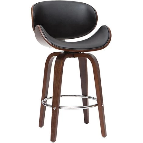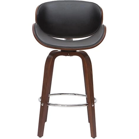Avec son design travaillé tout en rondeur, cette chaise haute apportera douceur et modernité à votre espace repas. Sa structure en bois foncé chaleureuse associée à son assise en polyuréthane noir fait de ce tabouret de bar un élément tendance. Inspiré du mobilier vintage, il est aussi irrésistiblement contemporain grâce à ses courbes et son piètement muni d’un repose-pied rond en acier chromé.
