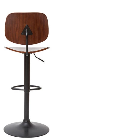 Avec son assise et son dossier en bois foncé aux angles arrondis, il évoque subtilement les pièces de mobiliers des 60’s. Cultivant son propre style, il repose sur un piètement en métal noir qui contrebalance parfaitement l’effet rétro de son siège. Ce juste équlibre offre un tabouret de bar au look unique et ultra tendance !
