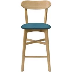 Une jolie structure avec un dossier en contreplaqué courbé ; un piètement en chêne massif élégant ; des lignes tout en douceur… pas de doute : le tabouret de bar DOVE s’inscrit dans la lignée des chaises bistrot avec brio. Avec son assise rembourrée et son dossier incurvé, ce tabouret de bar vintage offre un excellent confort. L’assise est habillée d’un joli revêtement en tissu 100% polyester bleu canard. Il se marie parfaitement avec le bois clair tout en facilitant l’entretien de votre chaise de bar. L’ensemble de la structure est recouverte d’un vernis transparent afin de nourrir et protéger le bois.