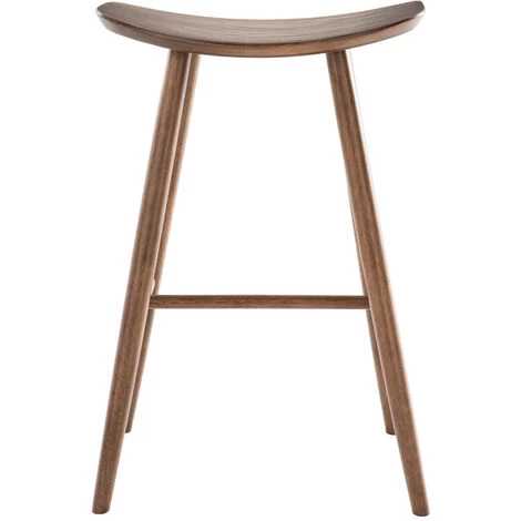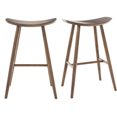 Des tabourets de bar sans dossier, pratiques et fonctionnels ! Des matériaux robustes et faciles d’entretien : les 4 pieds tubulaires en hévéa massif teinté noyer – renforcés par un repose-pied – accueillent une large assise en bois cintré en panneaux de fibres de bois placage noyer. Légers et peu encombrants, modulez votre plan de table en fonction de vos besoins en un tour de main ! Avec leur hauteur d’assise fixe (H72 cm), glissez facilement les tabourets DEMORY sous votre îlot ou table de bar.