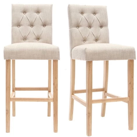 Vendus par lot de 2, ces tabourets de bar RIVOLI apportent du raffinement à votre intérieur. Leur dossier capitonné donne une touche classique chic et décalée à une décoration industrielle ou moderne. Le revêtement en tissu polyester beige naturel s’intégrera facilement avec vos meubles car c’est une couleur sobre et naturelle.