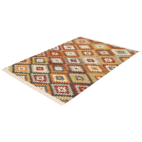 Le tapis kilim CHEYENE est un tapis de qualité tissé à la main et composé à 80 % de laine et à 20 % de coton. Il met à l’honneur les motifs traditionnels des tapis d’Orient. La richesse de son tissage et des couleurs qui l’habillent raconte des histoires venues de loin. Ses motifs graphiques et son style ethnique sont une véritable invitation au voyage. Dans le salon comme dans la chambre, ce tapis nous transporte vers un ailleurs authentique où s’exprime toute la beauté de traditions ancestrales.
