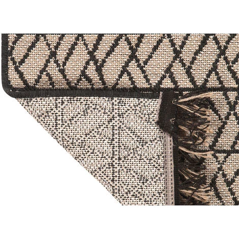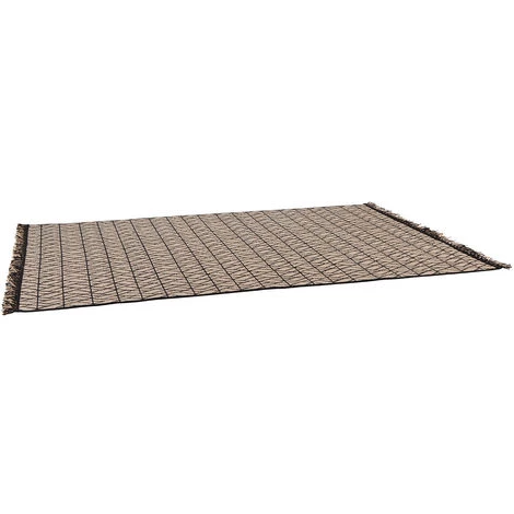 Avec son motif géométrique noir et ses nombreuses franges, ce tapis est idéal pour réchauffer un séjour et apporter une touche de modernité à la décoration. Grâce à son coloris naturel, il est intemporel et se mariera aussi bien à un intérieur bohème qu’à une pièce au style scandinave.