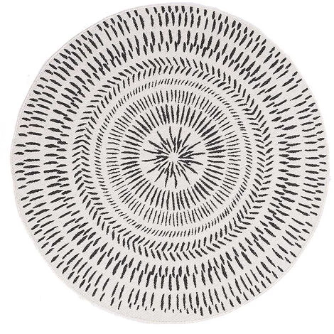 Avec ses 160 cm de diamètre, ce tapis est un accessoire parfait pour habiller les petits espaces. Pour le style, c’est à vous de choisir ! D’un côté, ce tapis rond affiche un look sombre ultra graphique avec son fond noir et son motif blanc. De l’autre, il offre un rendu doux et élégant avec sa base blanche habillée de traits noirs.