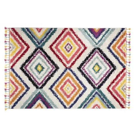 Avec ses belles dimensions (160 x 230 cm), ce tapis au style berbère revisité définit les contours d’un écrin chaleureux autour du canapé et réveille aussi la chambre en descente de lit ! Dans une pièce de vie ouverte, il délimitera l’espace séjour en douceur.