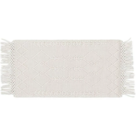 Les petites dimensions (L60 x L120 cm) et la teinte écrue de ce tapis lui permettent de se fondre facilement dans la chambre ou dans l’entrée.