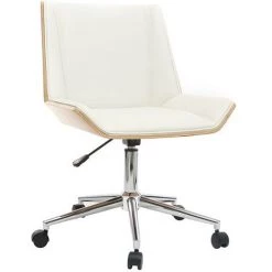 MILIBOO Fauteuil De Bureau Design Bois MELKIOR – Bois Clair / Blanc – Bois Clair / Blanc
