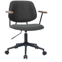 MILIBOO Fauteuil De Bureau Design En Tissu Gris Foncé Et Bois Noir SANDRO – Gris Foncé