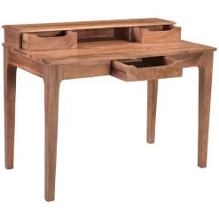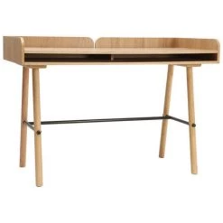 MILIBOO Bureau Vintage Avec Portes Coulissantes Et Cannage L120 Cm OLYMPE – Bois Clair / Blanc