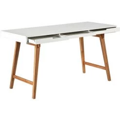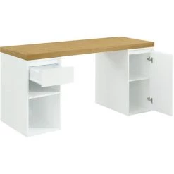 MILIBOO Bureau Plaqué Chêne Et Métal Noir Avec Caisson De Rangement L138 Cm OPAL – Chêne Clair Laqué