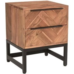 MILIBOO Table De Chevet Motif Chevrons Acacia Massif Et Métal Noir STICK – Bois Clair / Noir