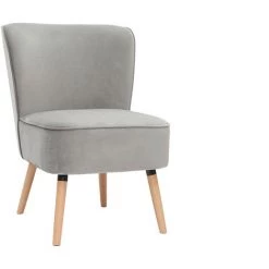 MILIBOO Fauteuil En Velours Gris Clair Et Bois Clair KAHLO – Gris Clair Velours