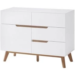 MILIBOO Buffet Scandinave Haut Blanc Mat Et Chêne SKIVE – Blanc Mat