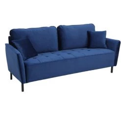 MILIBOO Canapé 3 Places Effet Velours Capitonné Gris Foncé Et Bois CUMBIA – Gris Foncé Velours