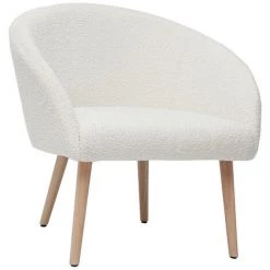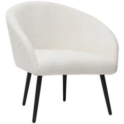 MILIBOO Fauteuil Design Blanc En Tissu Effet Laine Bouclée Et Pieds En Metal Noir OLIVIA – Blanc