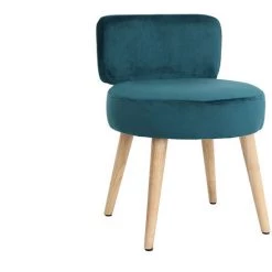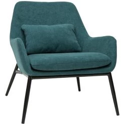 MILIBOO Fauteuil Design Tissu Effet Velours Bleu Canard Et Métal Noir MAXINE – Bleu Canard Velours