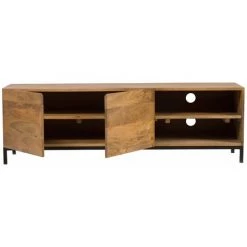 MILIBOO Meuble TV Industriel Manguier Massif Et Métal L145 YPSTER – Bois Clair / Noir