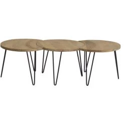 MILIBOO Tables Basses Gravées Manguier Massif Et Métal Noir (lot De 3) VIBES – Naturel