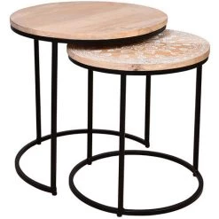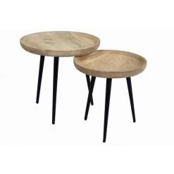 MILIBOO Tables Basses Gigognes Manguier Massif Et Métal TOGETHER – Bois Clair / Noir