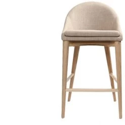 MILIBOO Tabourets De Bar Scandinaves En Tissu Beige Et Frêne Massif H66 Cm (lot De 2) DALIA – Beige